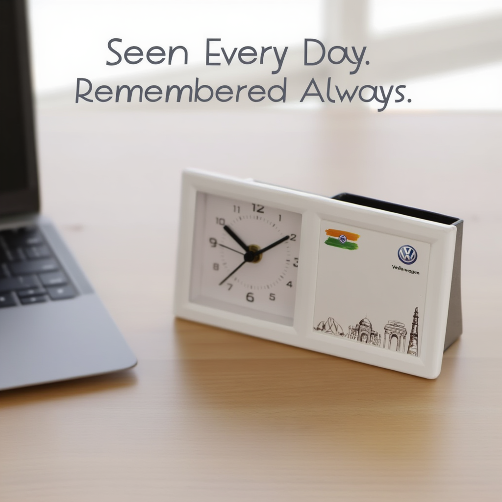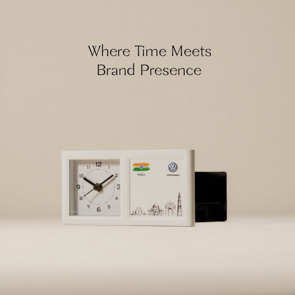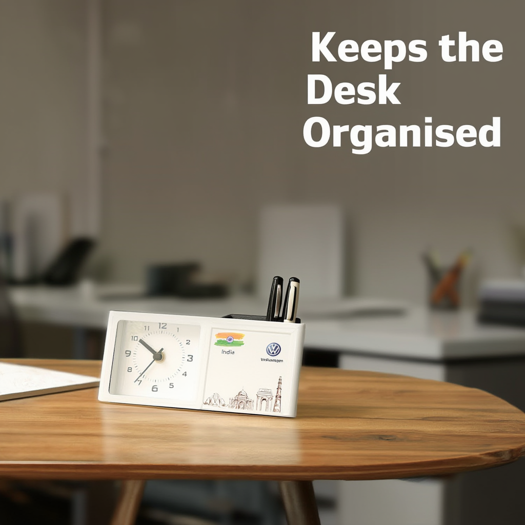 This customisable desk table clock with integrated pen stand combines timekeeping, organisation, and brand presence—making it a powerful corporate gifting solution for offices, executives, and business partners.