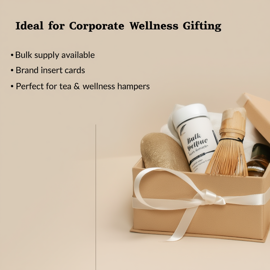 Made from finely split natural bamboo prongs, this whisk is designed for optimal aeration, gentle mixing, and a refined brewing experience, making it ideal for daily matcha rituals, wellness gifting, cafés, and premium corporate hampers.