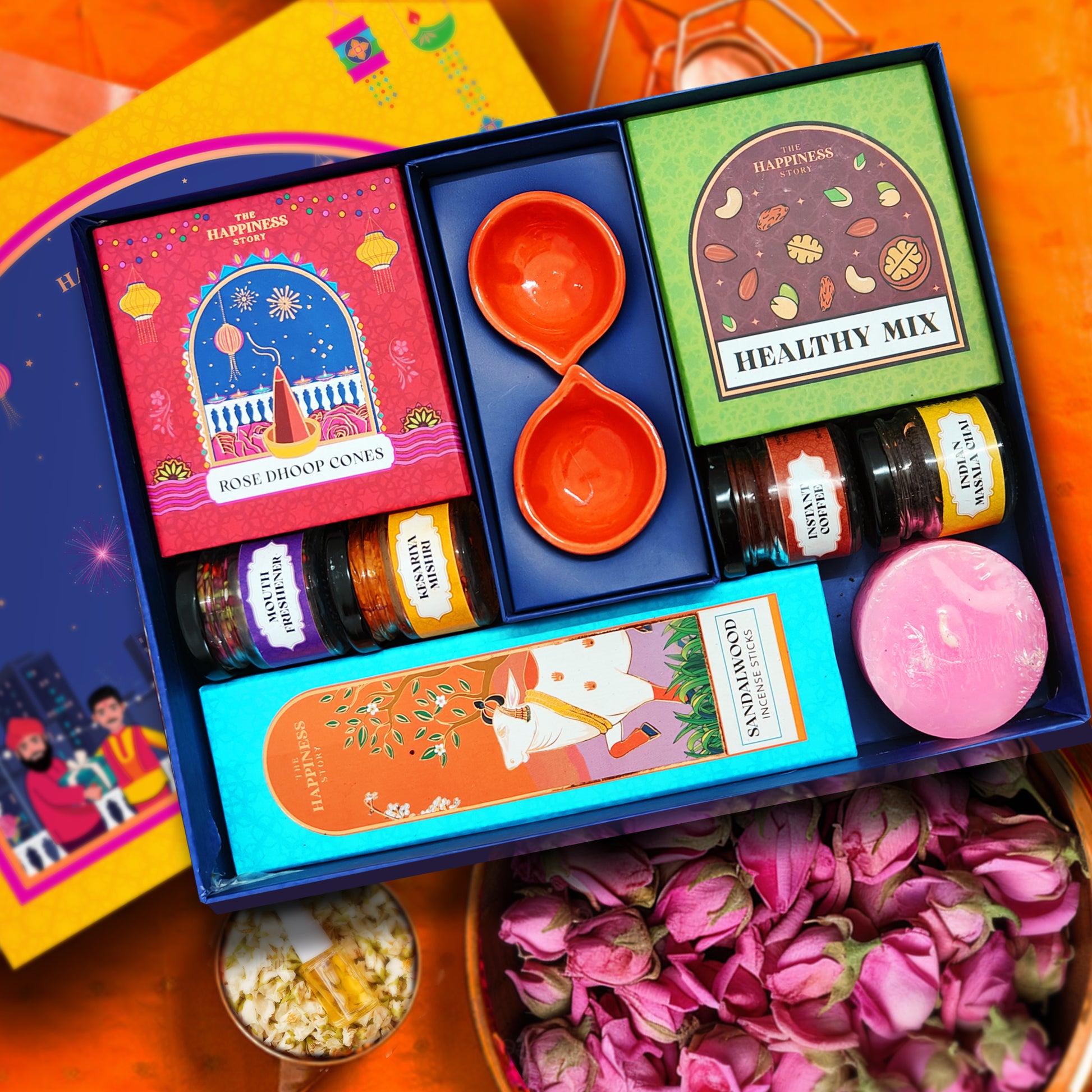 Celebrate the true spirit of Diwali with Khushiyan, a thoughtfully curated hamper that blends tradition, wellness, and festive warmth. Designed in a reusable Happy Diwali themed gift box, this hamper is more than a present—it’s a bundle of happiness meant to delight your loved ones.