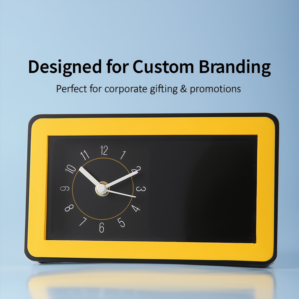 A clean, timeless battery-operated analog desk clock designed for everyday office use and maximum brand visibility. With a minimalist form, smooth dial, and fully customisable branding & inserts, the Signature Desk Clock is a reliable corporate gifting essential that stays on desks—and in minds—year after year.